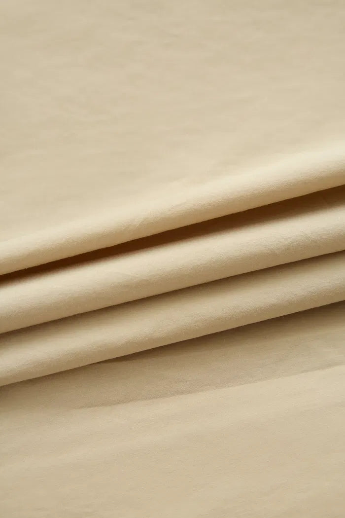 Classic fabric. Dry, soft feel. Light structure for 3D silhouette. Easy-to-wear light khaki.