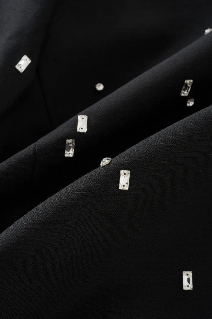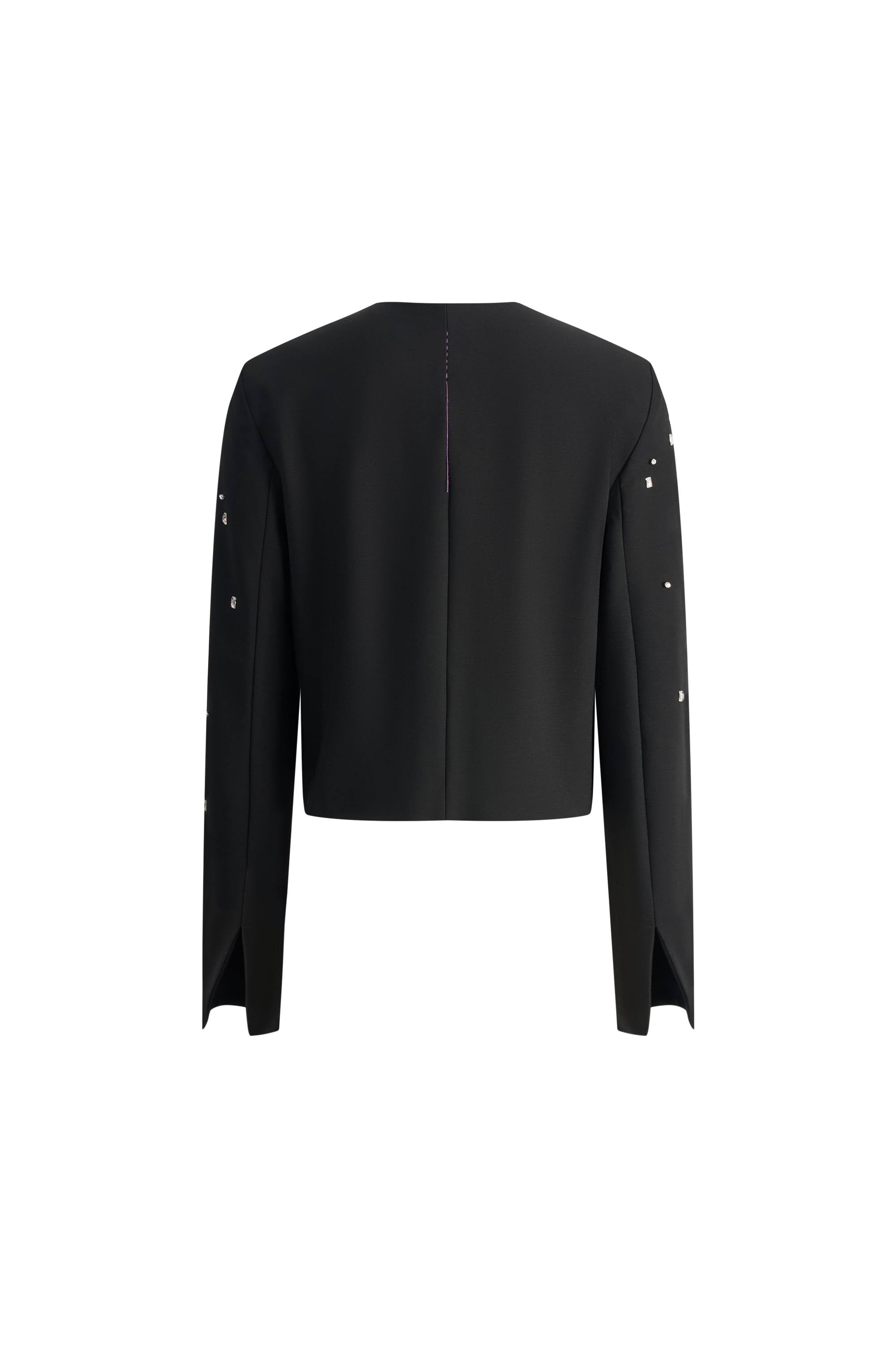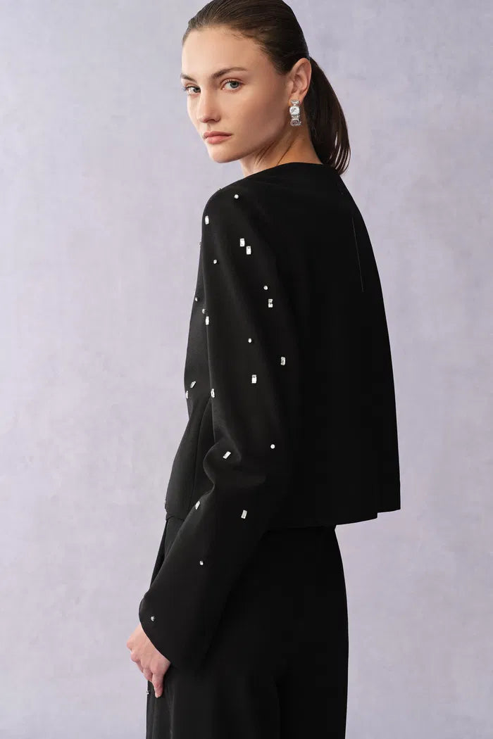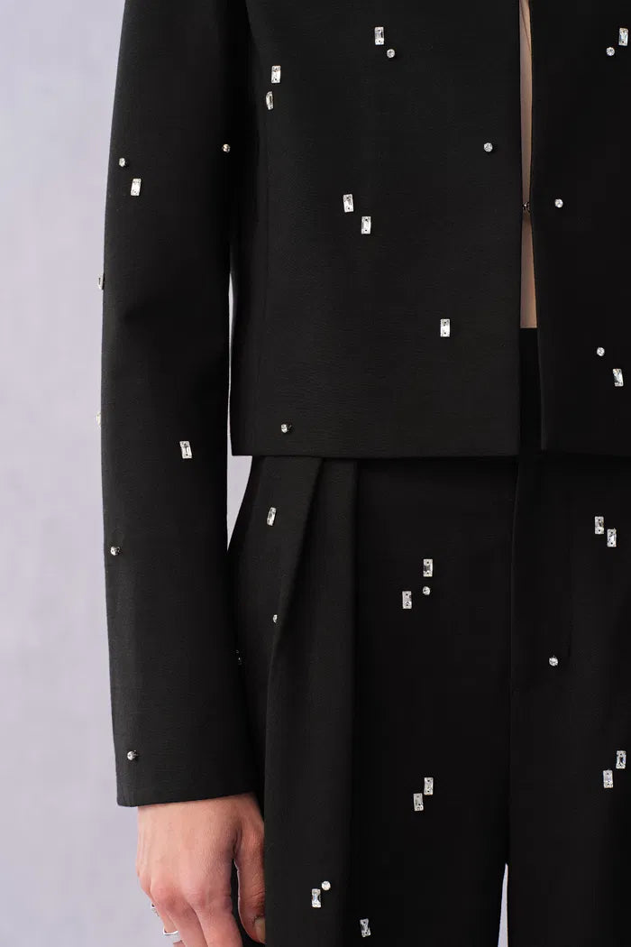 Aquila Hand Sewn Rhinestone Crop Suit Blazer in Fine Wool Suiting