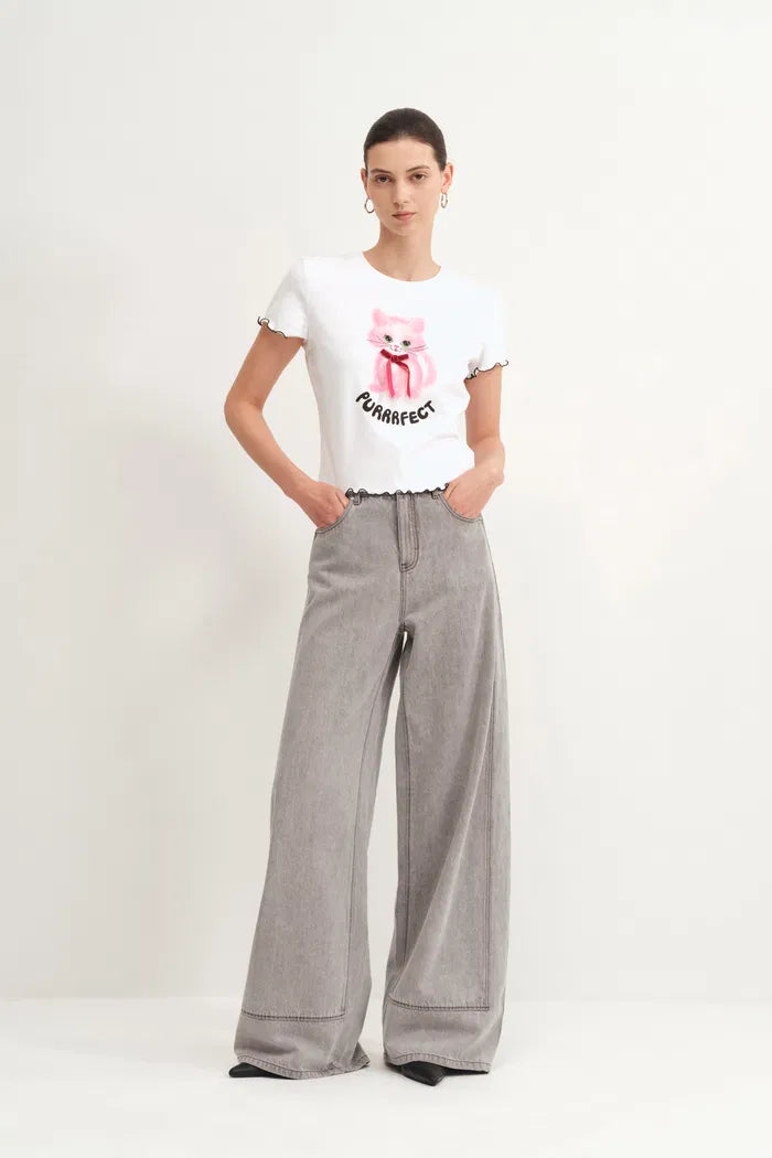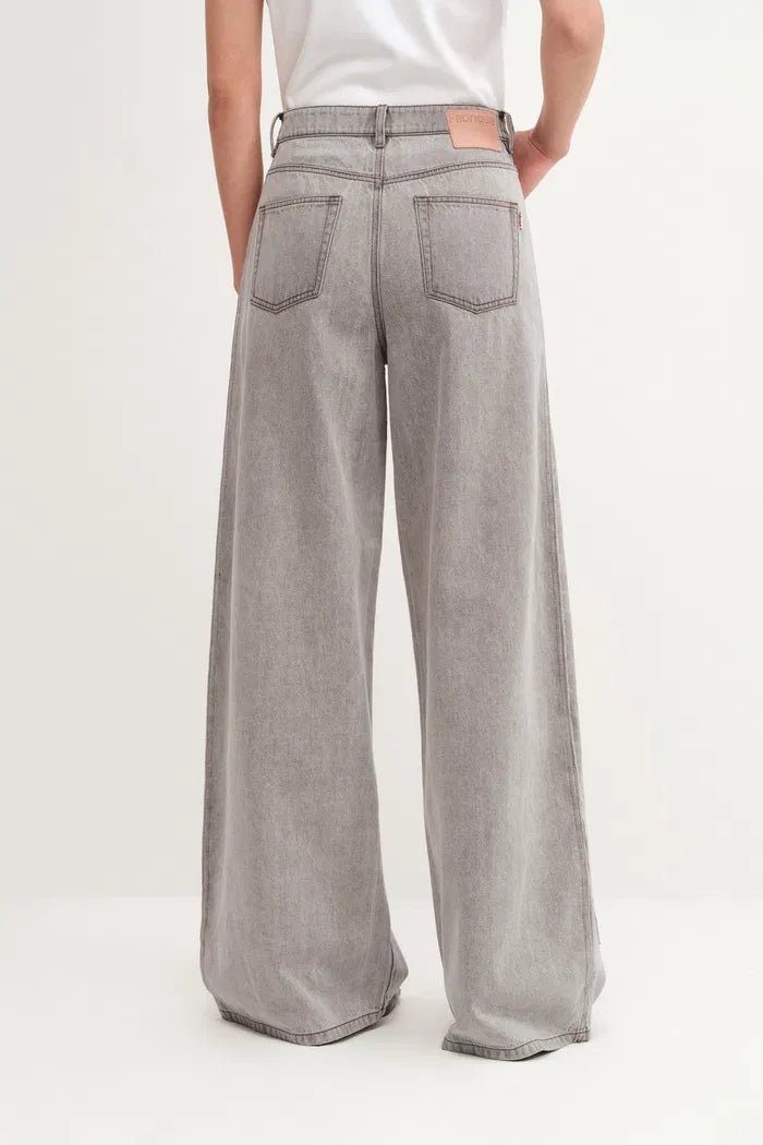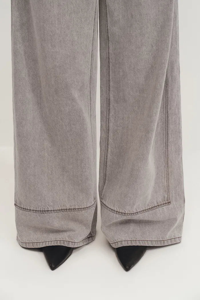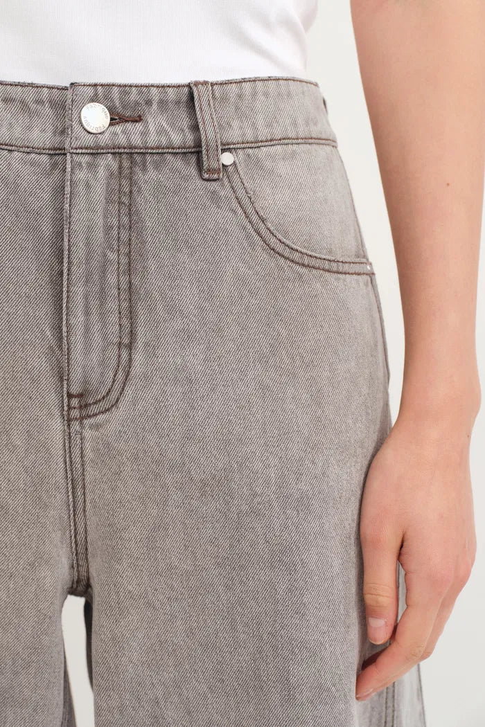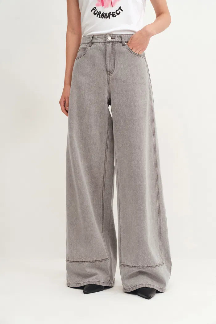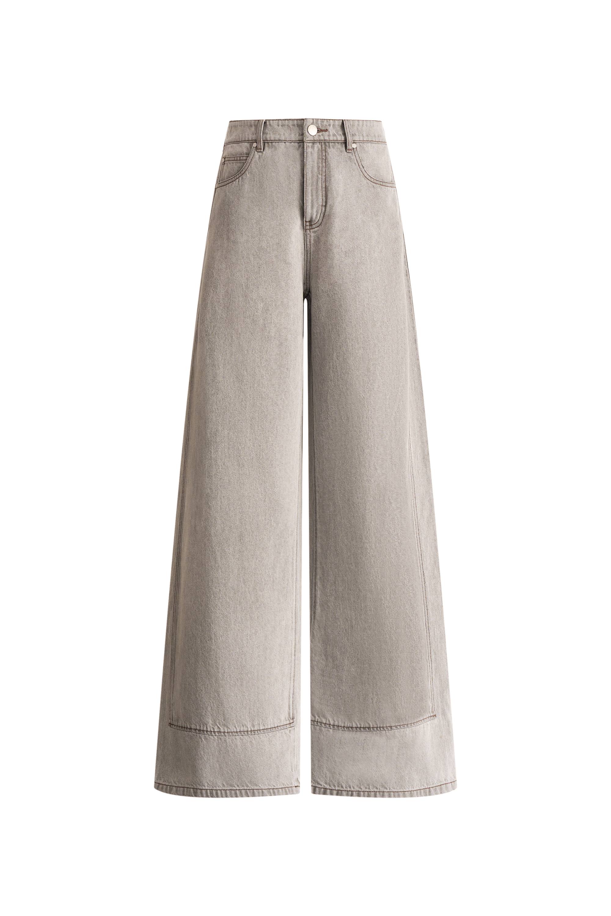 These cotton denim jeans offer a fresh take on workwear-inspired design. Side panel construction adds visual interest while the relaxed wide-leg cut ensures all-day comfort. Smoky wash brings modern edge.