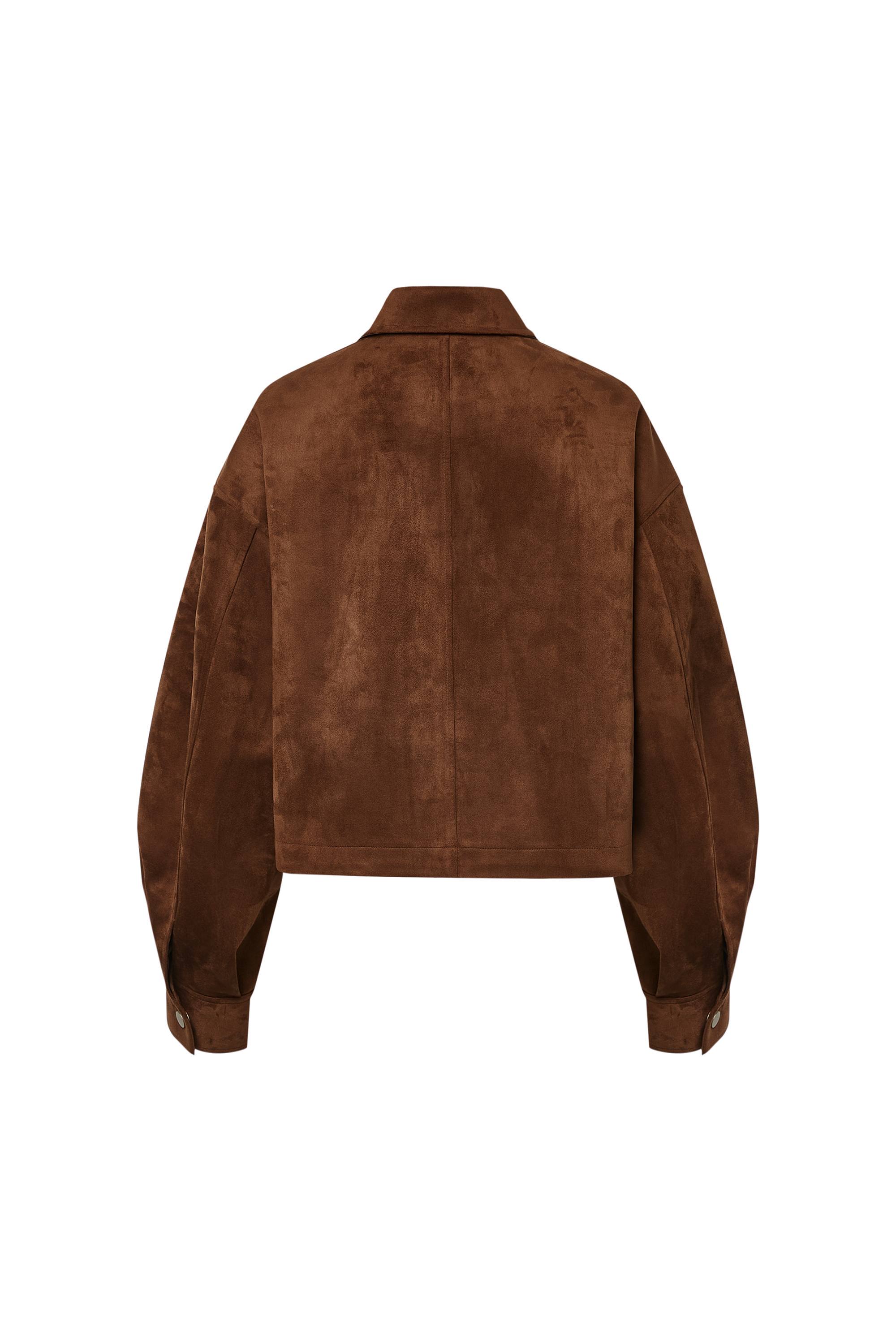 Vintage meet street cool in this caramel jacket, featuring oversized sleeves and a roomy fit that update the classic suede jacket.