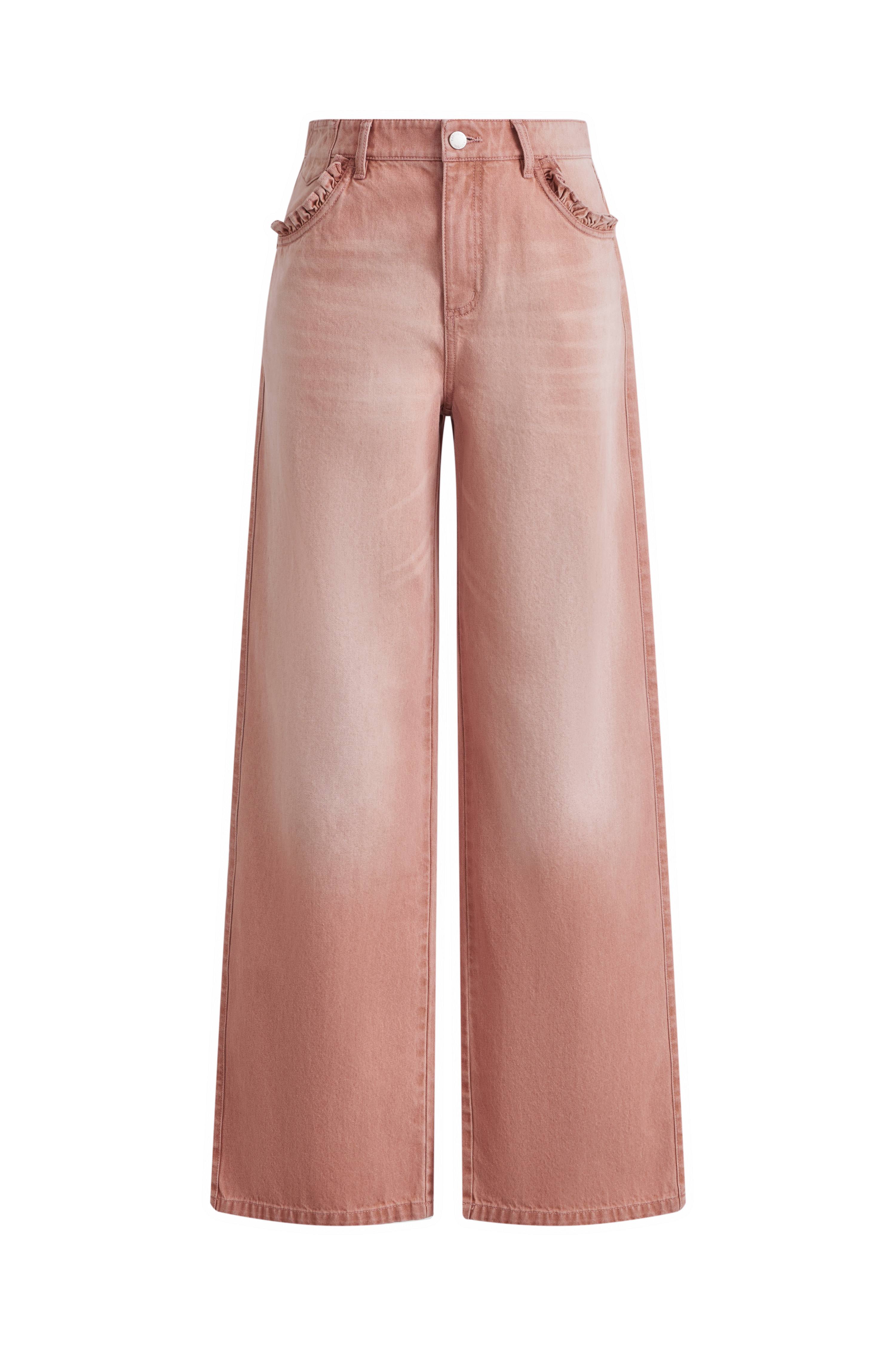 Delphine Ruffled Hem Pink Jeans in Cotton Denim