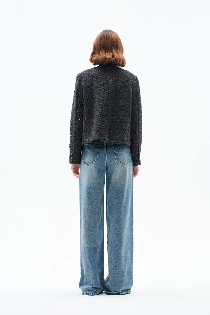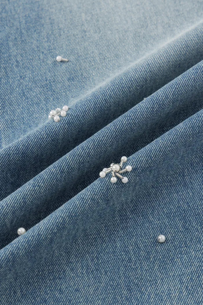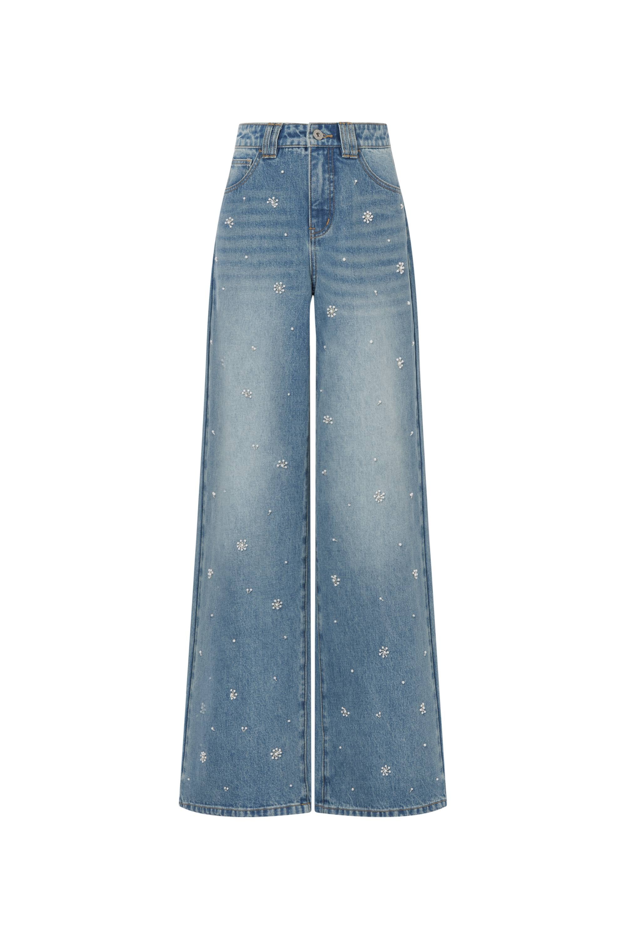 With striking hand-beaded embellishments and a relaxed wide-leg cut, these jeans cement themselves as a hero piece. Lightweight cotton denim ensures comfort and breathability, while a special wash creates natural distressing that only improves with wear.