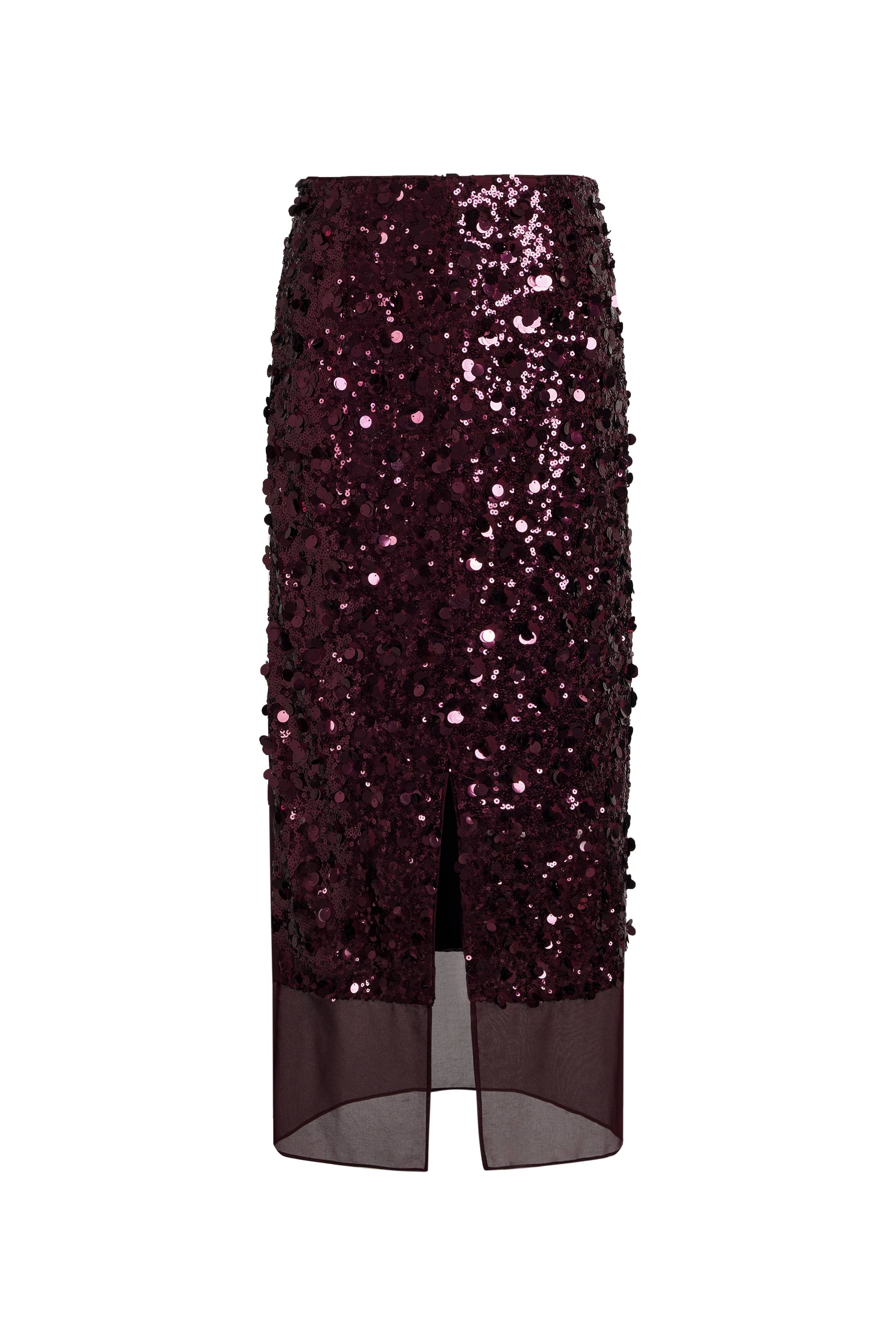 Elodie Hand-Applied Sequin Mesh Midi Skirt in Full Sequin