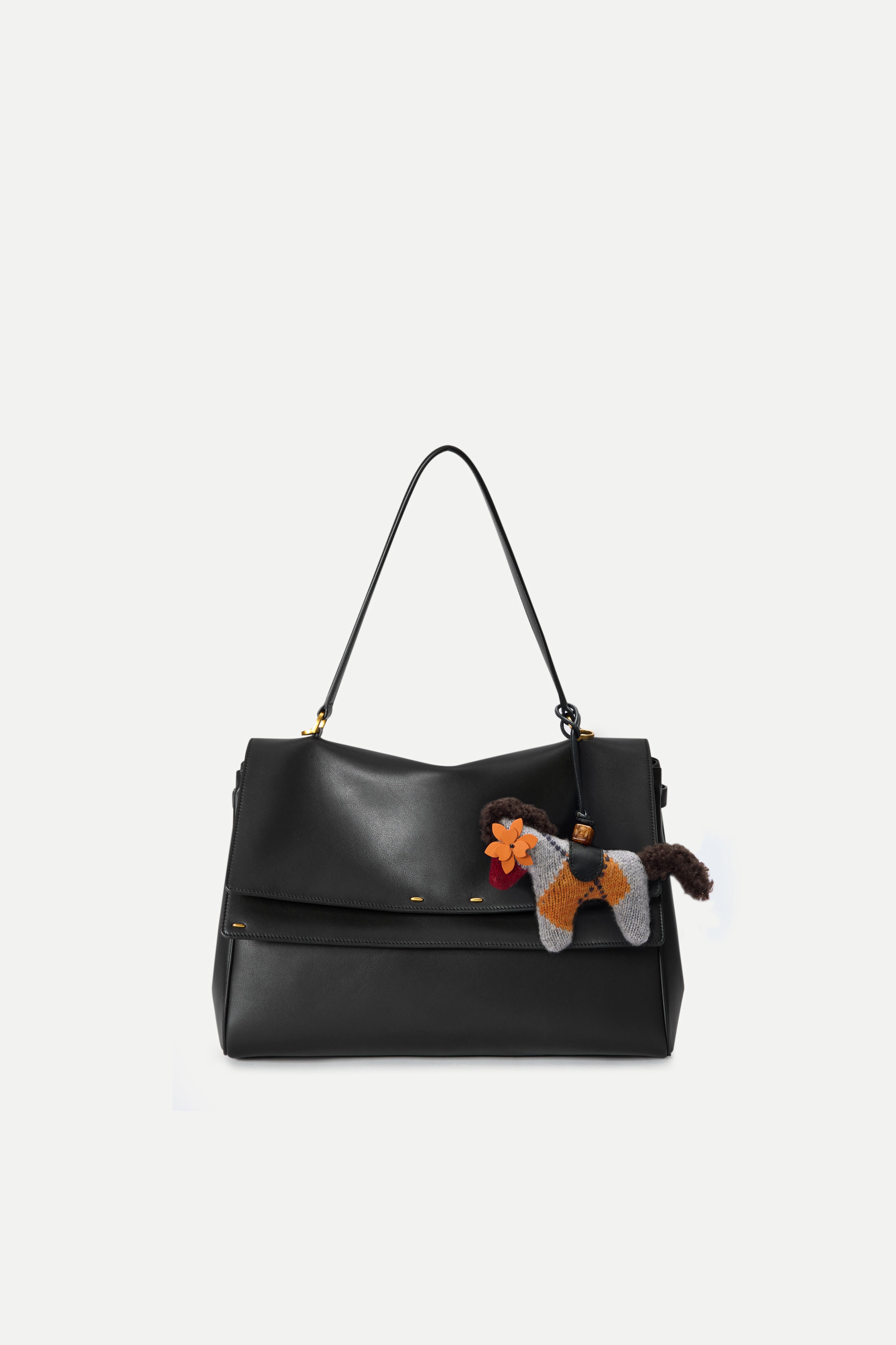 This knitted pony bag charm brings a playful British check twist into a soft, winter-ready accessory. The light heather grey base is lifted with a bold golden-orange contrast, while the fuzzy mane and tail add texture you can actually feel. Finished with a leather flower on the front and a cleaner, minimalist back.
