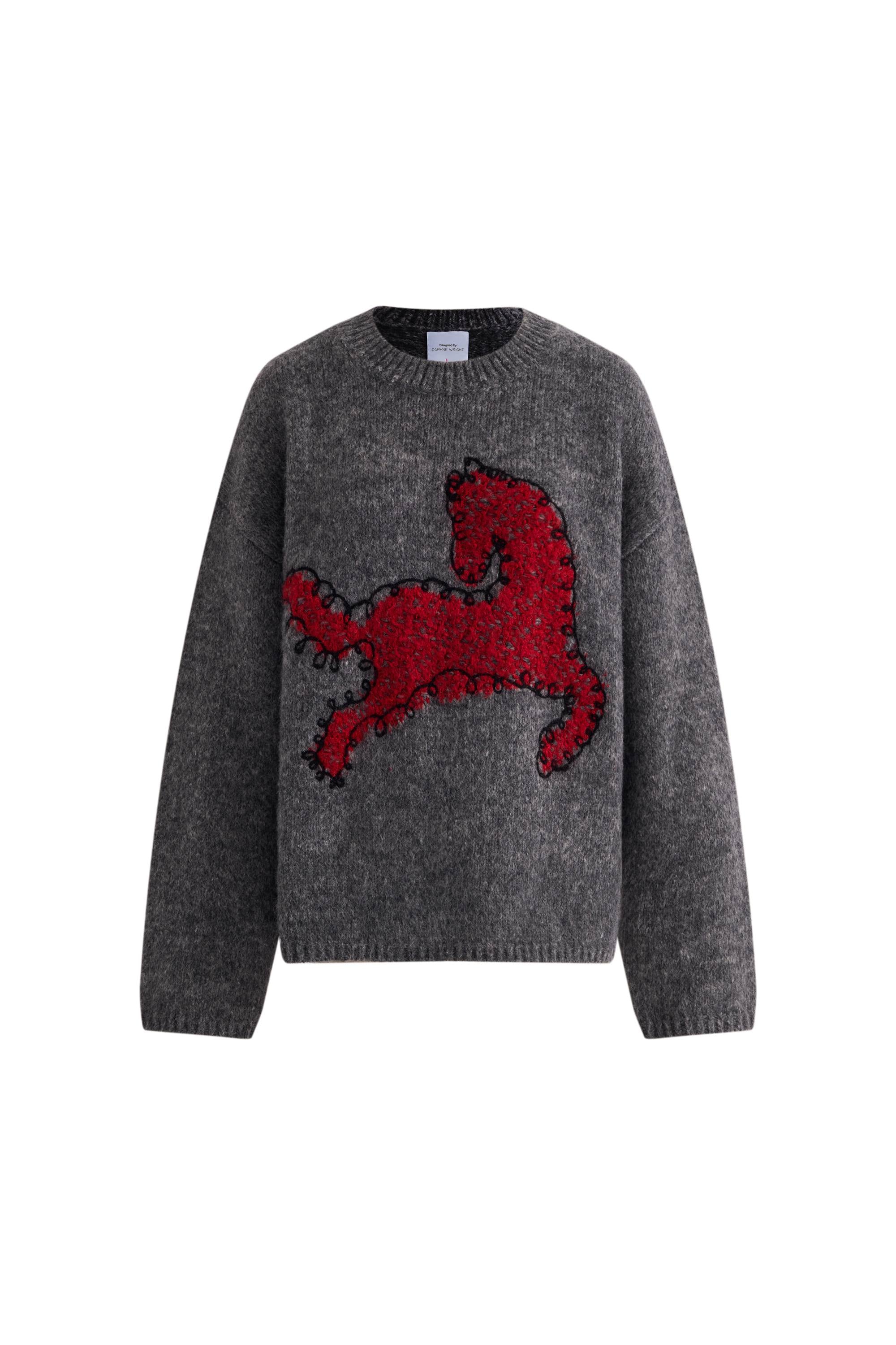 A cozy everyday knit in an easy grey tone, embroidered with a pony in boucle texture. Plush alpaca-blend yarn gives it the warm, cushy feel perfect for winter layering.